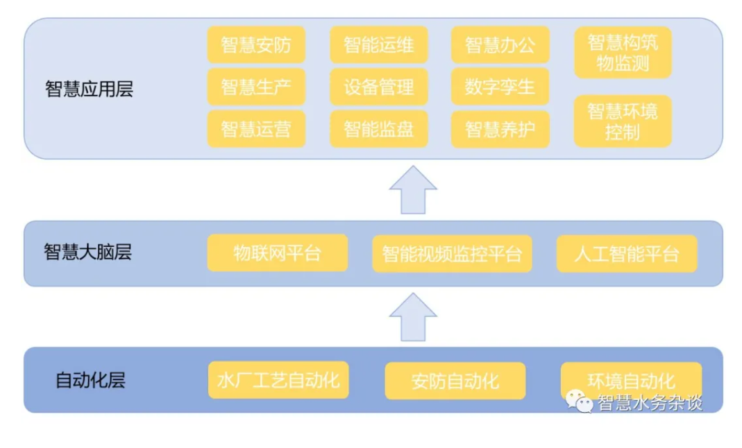 智慧水廠的建設應從底層的基礎硬件出發,向上逐步構建數據處理的智慧大腦,最后通過多個智慧化應用打造一個完善智慧化水廠。