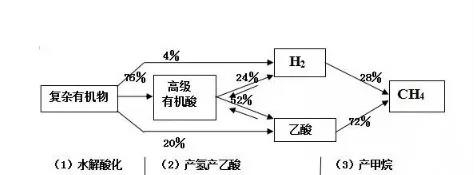 2.產(chǎn)氫產(chǎn)乙酸階段。在產(chǎn)氫產(chǎn)酸菌的作用下,各種有機酸分解轉化為乙酸、氫和二氧化碳。