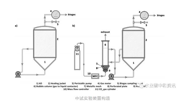 眾所周知,co2是在消化過程中伴隨著甲烷產生的產物。而另一方面,利用厭氧消化進行co2捕集固定是一種潛力十足的碳減排策略。兩個處理食品垃圾的厭氧消化試驗進行了225 d監測,實驗組定期使用氣泡柱充入co2(fernandez et al.)。實驗組測試ch4產率為0.56±0.13 m3ch4/kgvs·d(對照組為0.45±0.05 )沼氣中ch4濃度為68%,額外攝取了外源co20.55 kg,h2濃度增加了2.5 倍,這歸因于co2溶解以及酸化與產氫途徑改變。