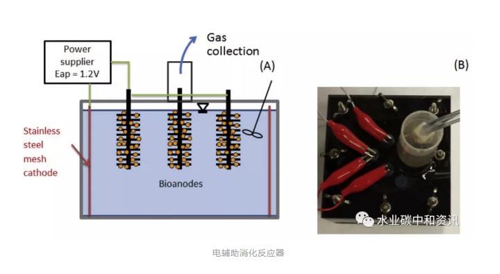 亦可以通過微生物燃料電池(mec)等創新技術刺激反應器中甲烷產生。應用電輔助消化(ead:裝備有mec生物陽極和陰極)和控制消化技術,在室溫(22~23℃)和3個srt(7、10、14 d)條件下,處理來自于市政污水處理廠的活性污泥(asztalos and kim)。ead 顯示乙酸、丙酸、正丁酸、異丁酸濃度減少,認為這是由于在生物陽極直接氧化短鏈脂肪酸,同時低乙酸濃度強化氧化的間接貢獻。在所有條件下,ead中vss和cod的去除率均比對照組高5 ~10%。此外,ead中電流的大小受有機負荷率影響,而導電性和乙酸濃度對其影響則微乎其微。