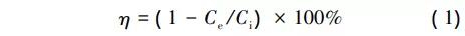 式中:η為納濾系統(tǒng)或子系統(tǒng)的截留率;ce為納濾系統(tǒng)或子系統(tǒng)的產(chǎn)水有機(jī)物或離子濃度,mg/l;ci為納濾系統(tǒng)或子系統(tǒng)的進(jìn)水有機(jī)物或離子濃度,mg/l。