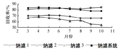 高分離納濾系統(tǒng)及各子系統(tǒng)運(yùn)行期間(2—11月)的水回收率如圖5所示。