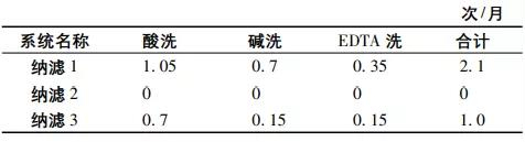 監(jiān)測(cè)期間納濾系統(tǒng)各段清洗頻率如表4所示。