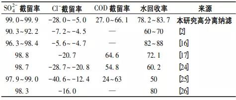 由表5可知:高分離納濾系統(tǒng)的so2-4截留率顯著高于傳統(tǒng)納濾工藝,進(jìn)一步表明其具有優(yōu)異的so2-4截留性能;相比之下,cl-和cod截留率與傳統(tǒng)納濾工藝的整體平均水平保持相當(dāng)。此外,高分離納濾系統(tǒng)的水回收率也顯著高于傳統(tǒng)納濾工藝的整體平均水平。