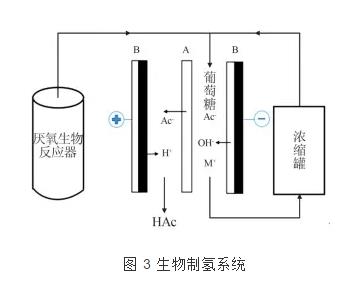 燃料電池與bmed技術(shù)的結(jié)合,為能源的發(fā)展拓展了新方向。在生物制氫方面,jing tang等提出一種集成發(fā)酵制氫和產(chǎn)物分離為一體的生物制氫系統(tǒng),見圖 3。