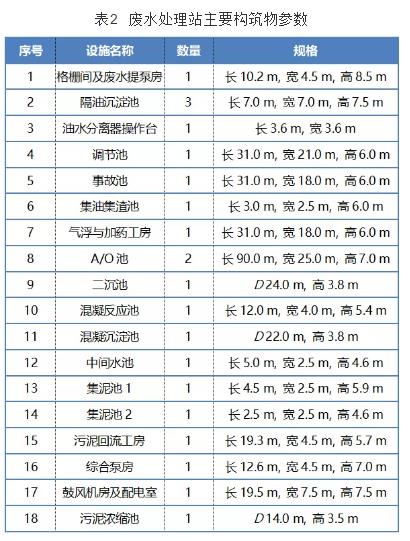 酚氰廢水處理站主要構筑物參數如表 2所示。