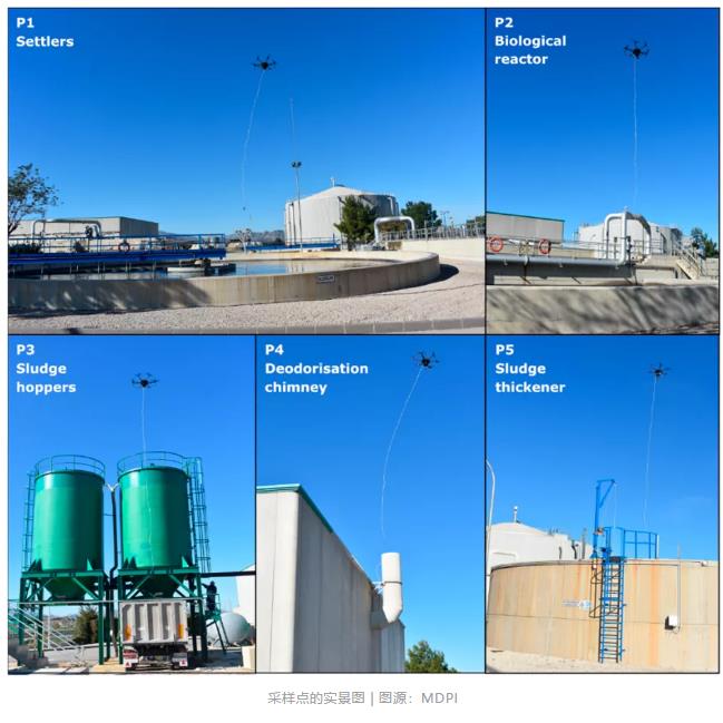 他們在西班牙的murcia污水廠進行實地測試。采樣地點包括了沉淀池、生物反應池、污泥濃縮池、污泥儲存室、除臭室煙囪。